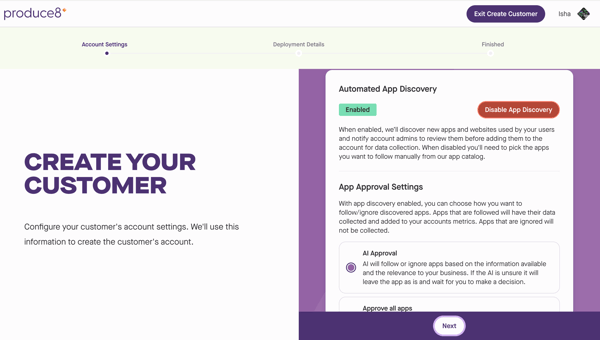 - Enable Automatic User Discovery to simplify onboarding and ensure devices begin collecting data as soon as the Produce8 Agent is deployed.