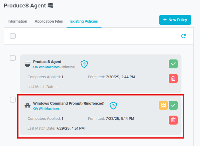 Add a policy for Windows Command Prompt (Ringfenced) to the application policy you created above: