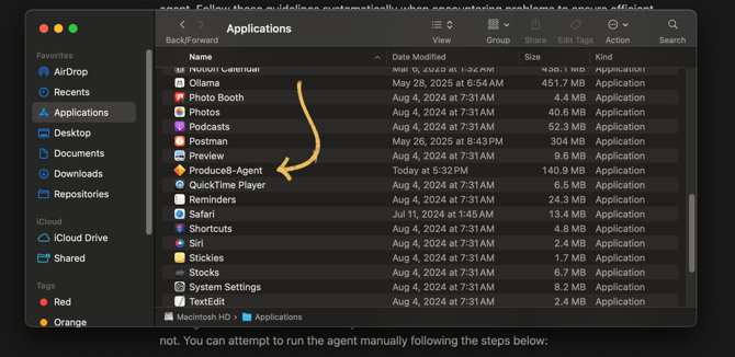 Optional: To delete Agent Logs, navigate to: Library > Logs and remove the Produce8-Agent folder.