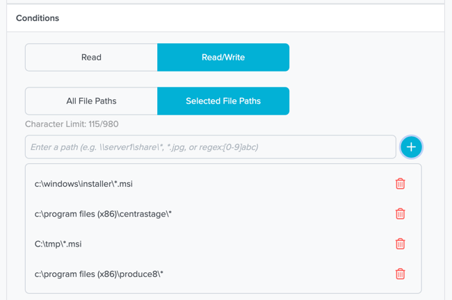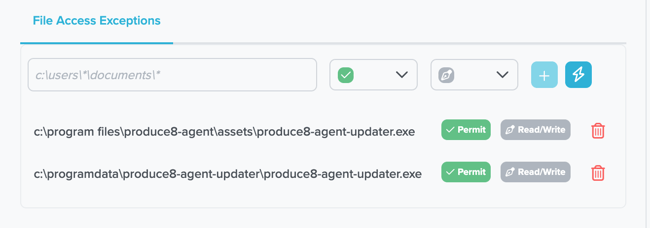 If you’re also installing the Produce8 Desktop App, add the following allowed file rules under a new or existing application: