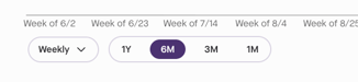 Use the date selector to adjust the timeframe for displayed metrics. You can toggle between monthly, daily or weekly views and review current or historical data within your account’s data retention period.