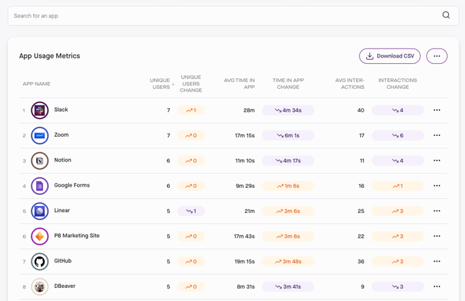 The App Metrics section provides a detailed breakdown of App usage, helping teams understand where their time and attention are spent.