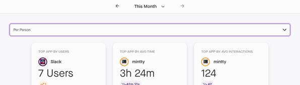 - Top Apps – Highlights the top 5 apps used by the team, based on total duration, with comparisons to the previous period.