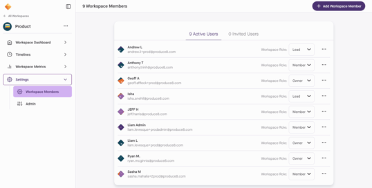 Assign a permission level (Member, Lead, or Owner). [For more details, see Roles & Permissions in Produce8].