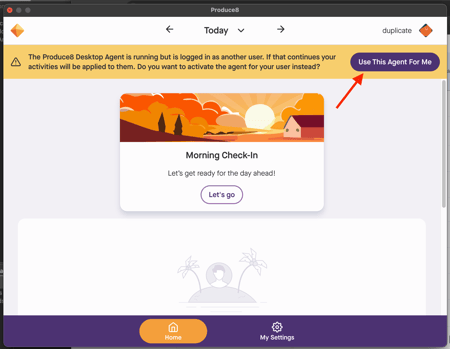 - Ensure the Agent is running — and if it detects a different or no user, a banner will be displayed at the top of the webpage.