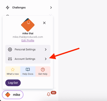 - In the bottom-left hand corner, click on your name to open the menu and select Account Settings.